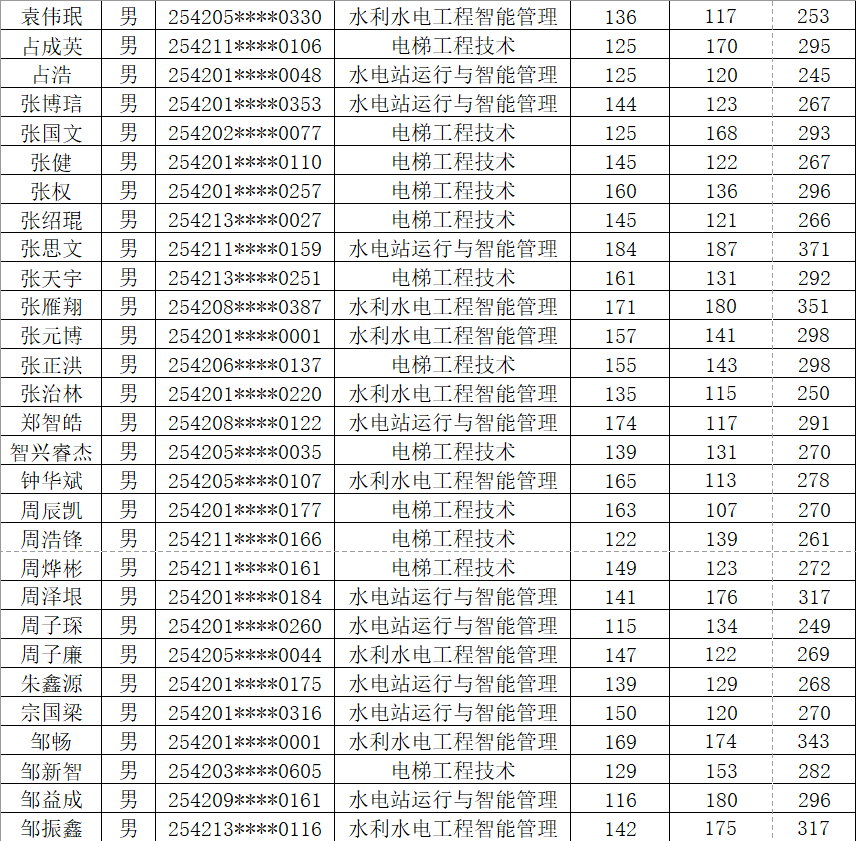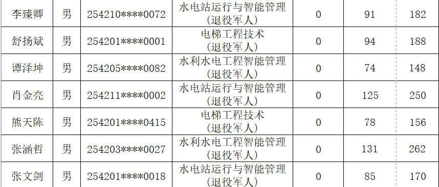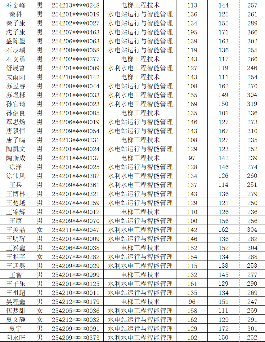 根据《省教育厅关于做好2025年高职单独考试招生工作的通知》(鄂教职成函〔2025〕3号)文件精神。按照《湖北水利水电职业技术学院2025年高职单独招生章程》中公布的录取标准和录取办法,确定各专业拟录名单并予以公示(按照考生姓名排序)。公示期为4月7日-13日,公示期内如有疑问,及时与我校招毕办联系。经我校公示录取的考生,不得参加今年后续普通高校招生统一高考、技能高考以及其他考试和录取。最终录取结果以省招办审核通过的名单为准。咨询电话:027-87378093 监督电话:027-87378279。