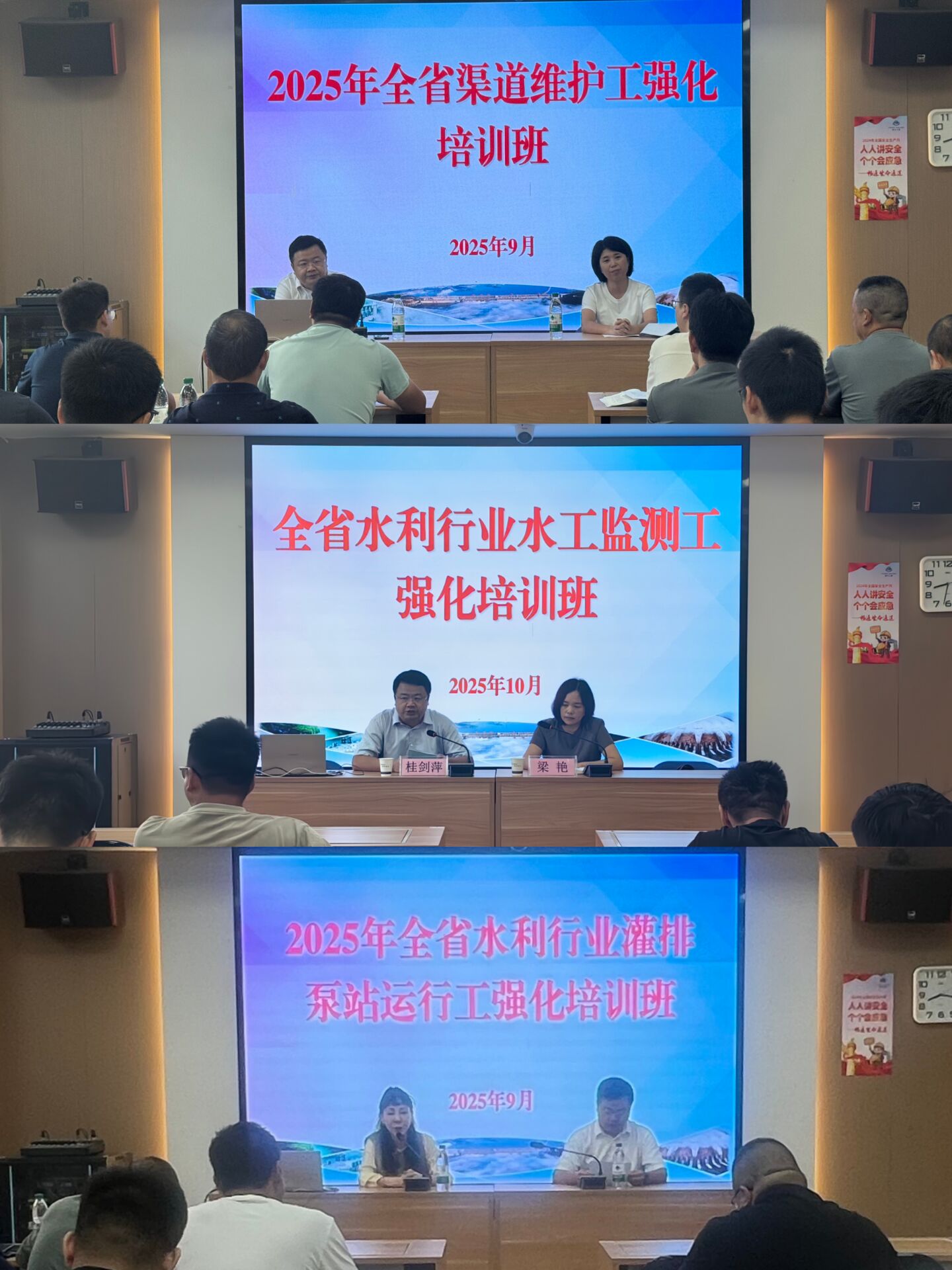 为积极备战今年下半年即将举行的全国水利行业职业技能竞赛——渠道维护工、灌排泵站运行工、水工监测工职业技能大赛,由厅人事处联合厅农水处、湖泊处、水库处主办,我院人才服务中心承办的“全省渠道维护工、灌排泵站运行工、水工监测工国赛强化培训班”于9月15日-10月17日在我院依次开班。来自全省各相关单位的优秀选手齐聚一堂,分工种各展开了为期9天的高强度、专业化集中培训及选拔考试。党委委员、人事处处长桂剑萍出席培训开班式。