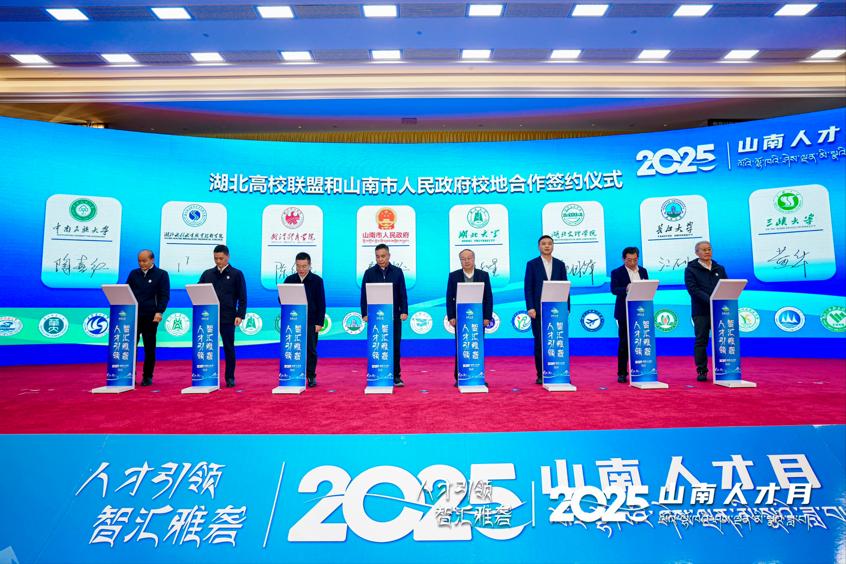 10月21日,在2025年山南市人才月活动启动仪式上,学院作为湖北省唯一受邀出席的高职院校,与中南民族大学、湖北大学等7所湖北高校共同与山南市人民政府签订校地合作协议,标志着湖北高校与山南市校地合作联盟正式实质化运行。学院党委副书记、院长张政,党委委员、副院长陈鲁莉出席活动。
