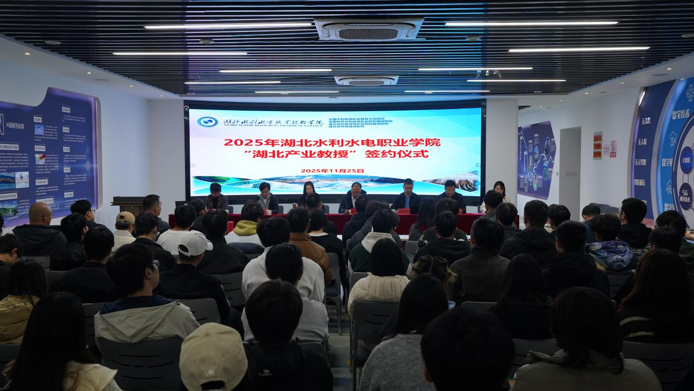 11月25日下午,我院2025年“湖北产业教授”签约仪式暨学术报告会在汤逊湖校区水利楼212智慧水利实训室举行。湖北省水利水电规划勘测设计院有限公司党委委员、副总经理姚晓敏,党委委员、副总经理、工会主席项珺,人力资源部部长李杰,学院党委书记姚祖军,党委委员、人事处处长桂剑萍,水利工程系相关负责人及110名师生共同参加活动。