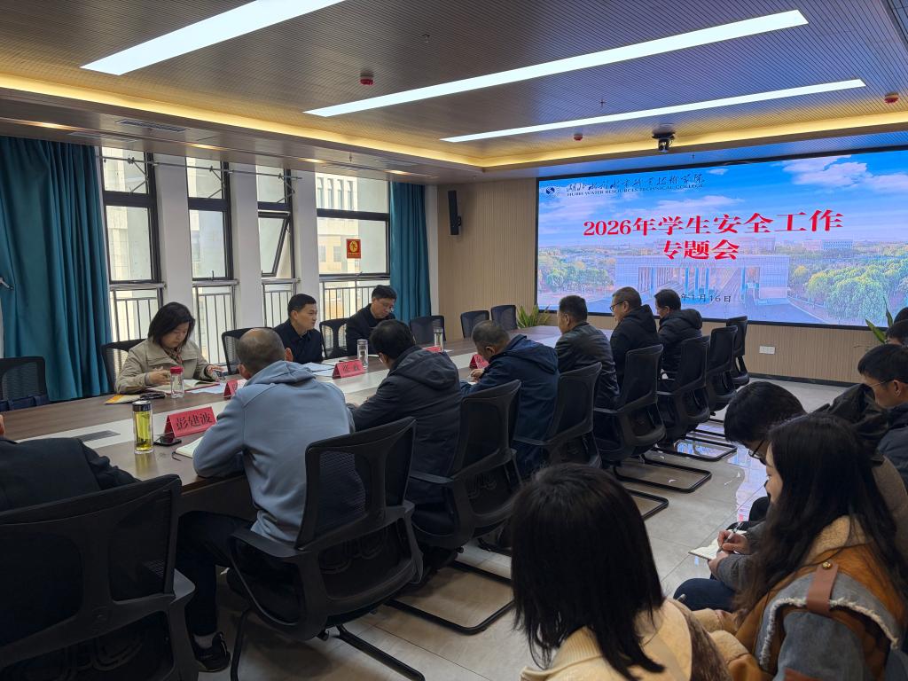 1月16日,学院在汤逊湖校区召开2026年学生安全工作专题会议,筑牢校园安全防线。学院党委副书记、院长张政,党委委员、副院长庹祖明,党委委员、副院长陈鲁莉出席会议。各系部和院办、保卫处、后勤服务中心、学工处、院团委等部门负责人参加会议。