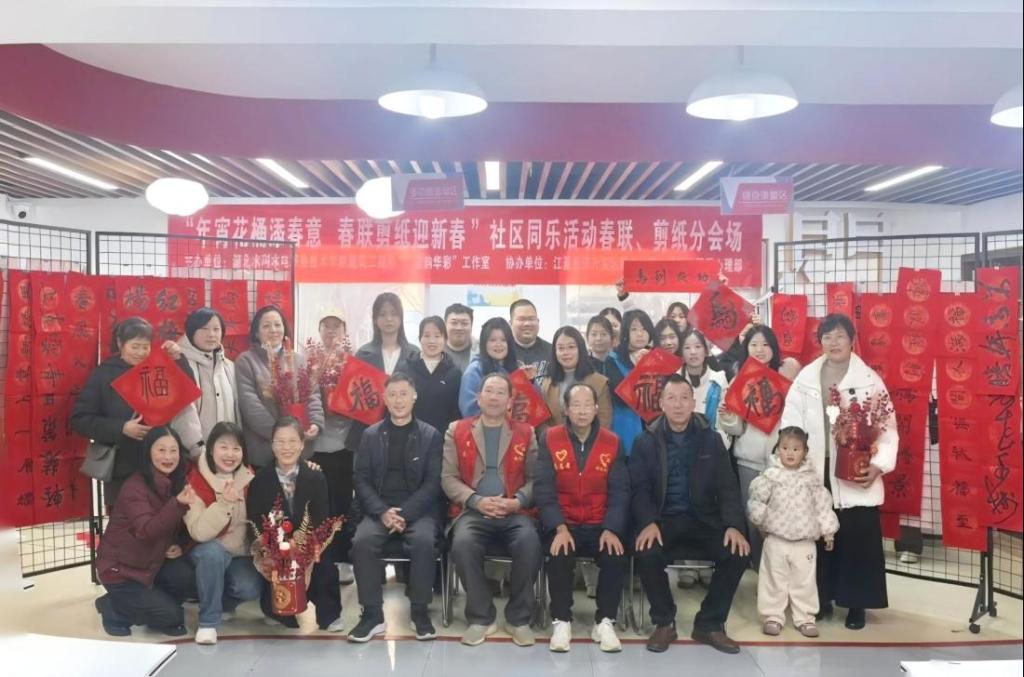 2026年1月13日上午,“美韵华彩”工作室携手藏龙社区老年学校联合举办“年宵花桶添春意,春联剪纸迎新春”社区同乐送祝福活动。